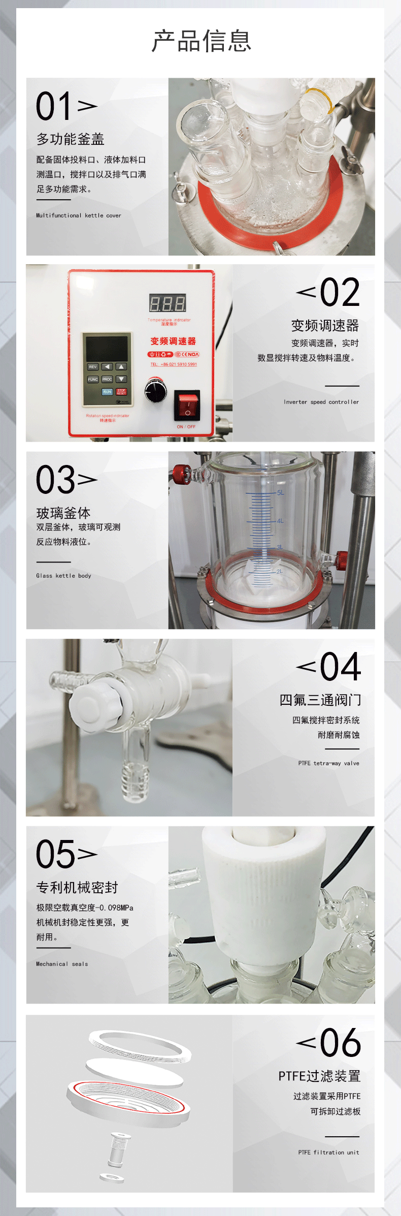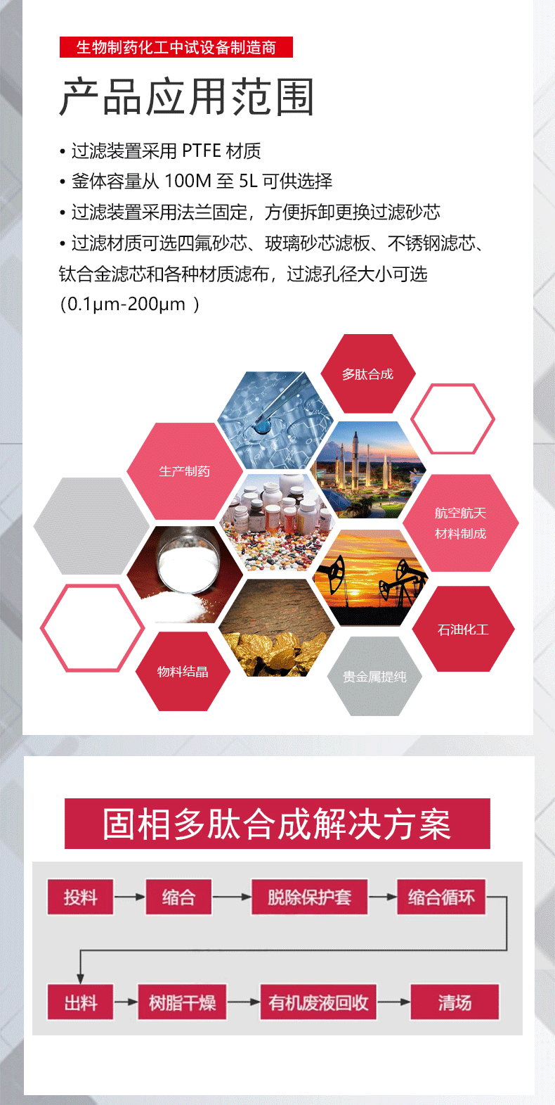 該款雙層玻璃多肽固相合成反應(yīng)釜采用全夾套釜體,微米級孔徑的四氟過濾底板,反應(yīng)穩(wěn)定,耐腐蝕能力強