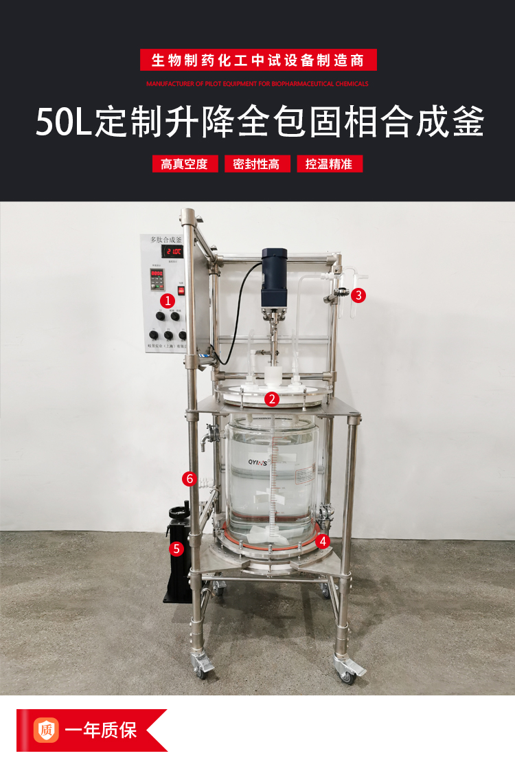 中試多肽合成一條線固相釜防爆50L玻璃固相合成釜