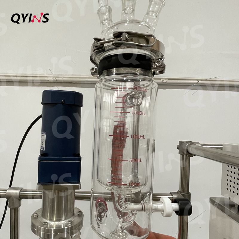高透明度和高同心度,內(nèi)置蛇形玻璃盤管冷凝器配套316不銹鋼攪拌框,結(jié)合四氟刮條