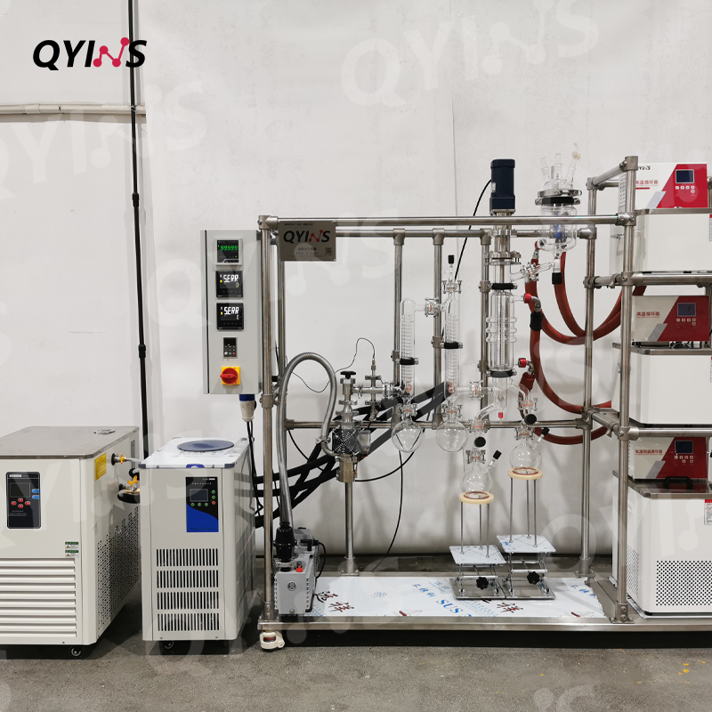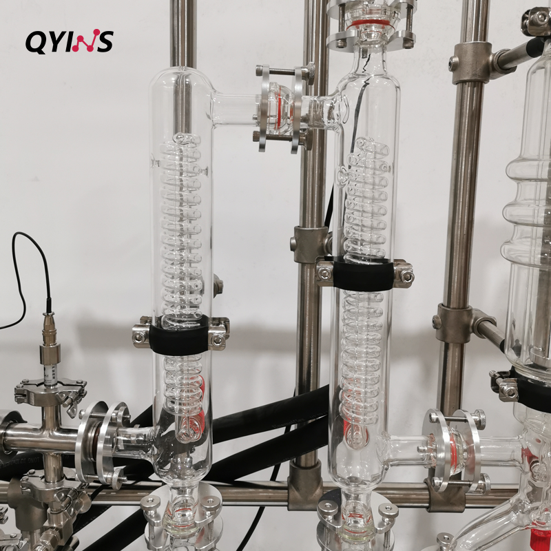 玻璃分子蒸餾 QYMD-60D(有效蒸發(fā)面積0.06㎡,外置兩根冷凝器,配套兩臺(tái)低溫泵) 應(yīng)用領(lǐng)域 : 日用化工及化妝品 醫(yī)藥 添加劑 塑料 農(nóng)藥及表面活性劑-礦物油 工業(yè)大麻(CBD) 加工物料 。