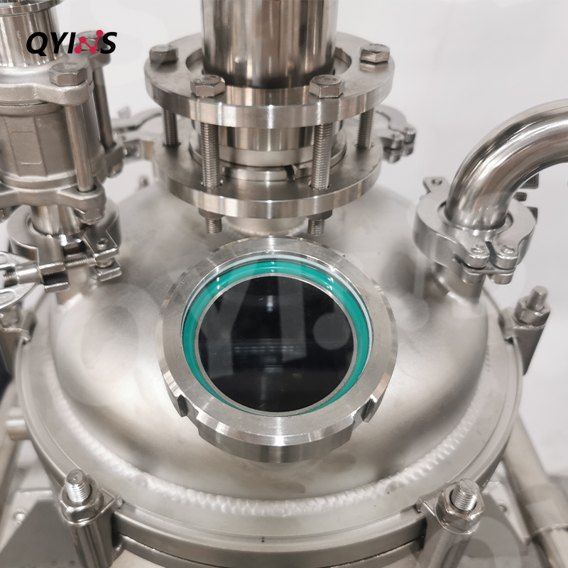 多功能釜蓋,可根據(jù)客戶需求定制開(kāi)口,超大視鏡口,便于觀察物料情況。