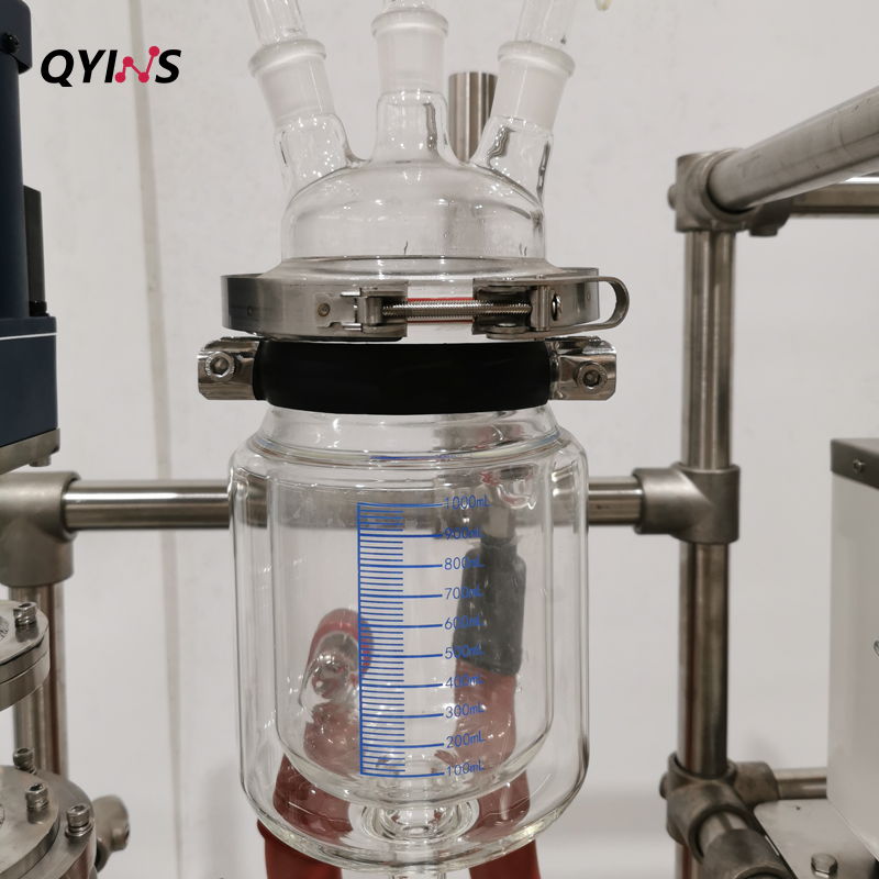 高同心度和高透明度,內(nèi)置蛇形玻璃盤管冷凝器配套316不銹鋼攪拌框,結(jié)合四氟刮條
