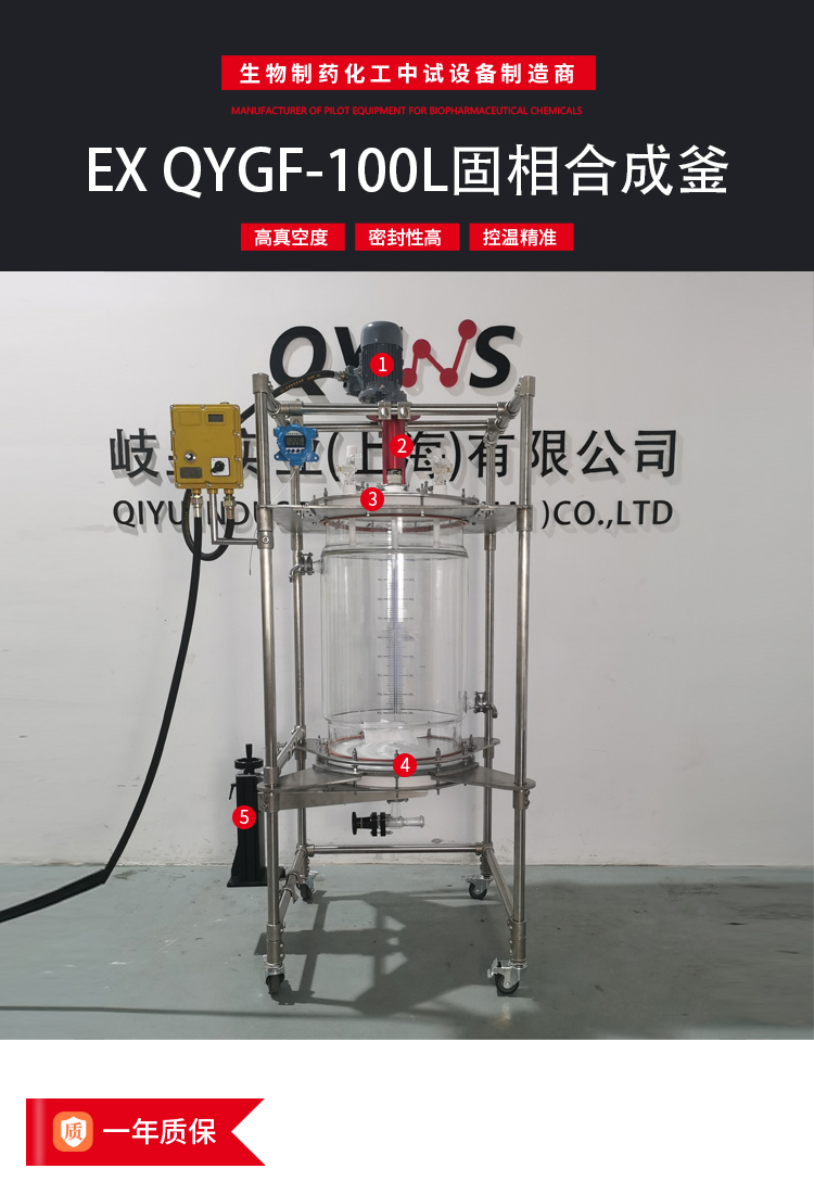 固相反應(yīng)釜/過濾反應(yīng)釜可用于攪拌、過濾、抽濾、多肽合成、結(jié)晶、裂解等工藝。攪拌采用真空負壓進行抽濾,高硼硅玻璃釜體,透明度高,能夠方便的觀察實驗過程