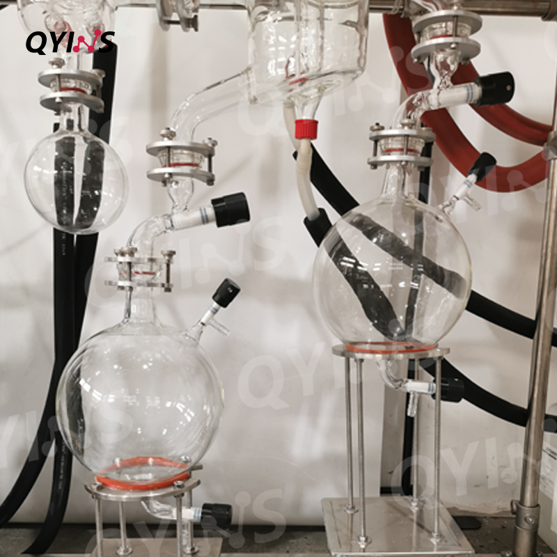 雙冷凝器,冷凝效果更好,保護(hù)真空泵,適用于分離復(fù)雜的混合物。