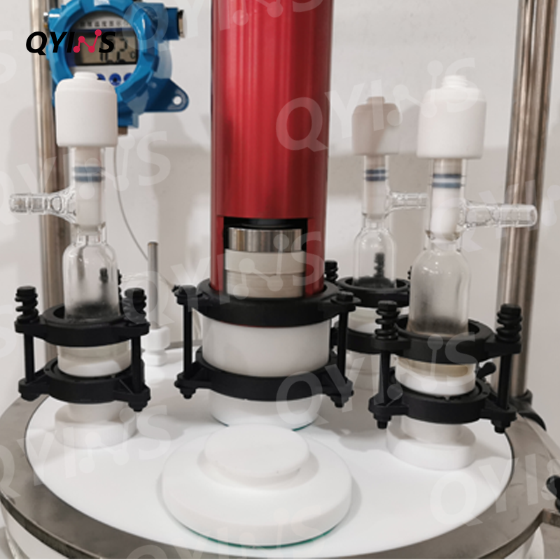 釜蓋開口四氟釜蓋 共6口( 攪拌口,液體進(jìn)料口,測溫口,固體投料口,放氣口、備用口)可定制