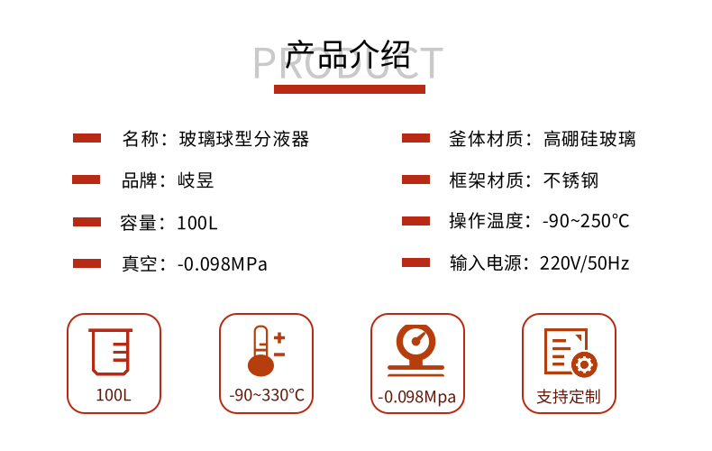 本款球型分液器,采用高硼硅玻璃球型釜體,擁有良好的物理和化學(xué)性能。廣泛適用于液液分離、制藥提純、精油提純、香精提純、新材料分離提純、油類(lèi)分離提純等